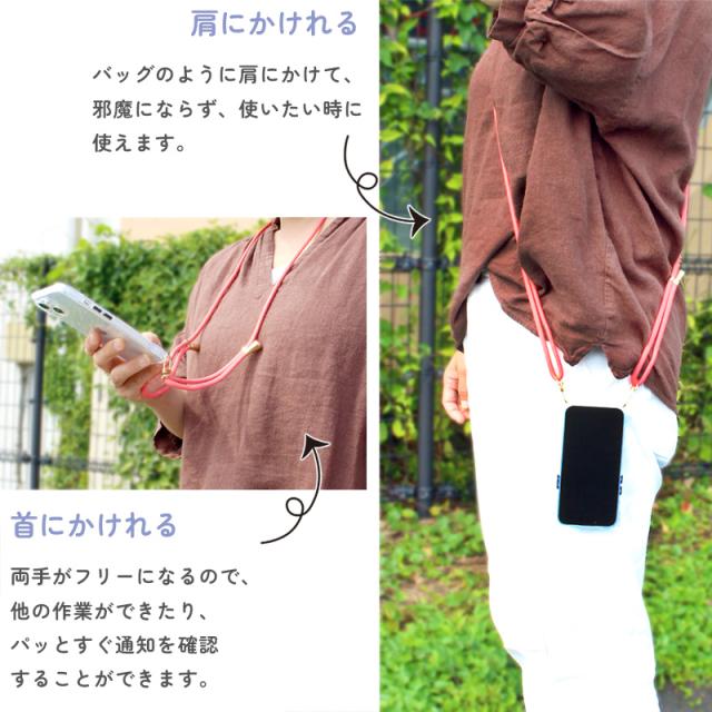 | 商品説明 | クリアケース付きショルダーストラップ! スマホを落としそうになりヒヤッとした時はありませんか? ポケットのない服を着ているとき、子供と散歩の時など鞄を持つのは…と思った時に便利なアイテムです。 スマホにしっかりフィットするクリアケース付きです。 グレア加工なので、スマホがピッタリくっつかない! 手帳型ケースも丸穴があればストラップのみで装着可能です。 豊富なカラーバリエーションの中から自分好みのカラーをお選びいただけます。 |