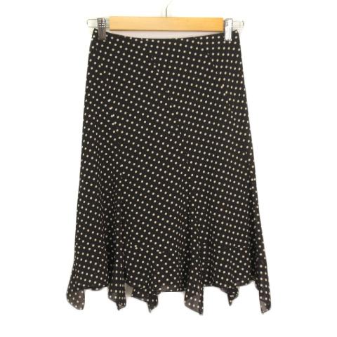 【中古】クイーンズコート QUEENS COURT スカート フレア ドット アシンメトリー シフォン 1 黒 ブラック レディース