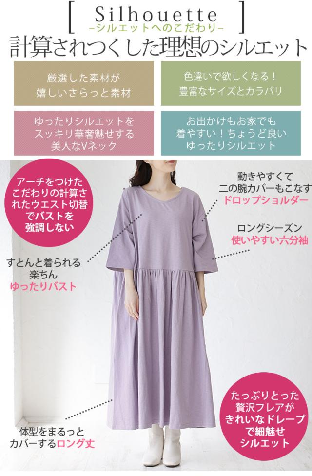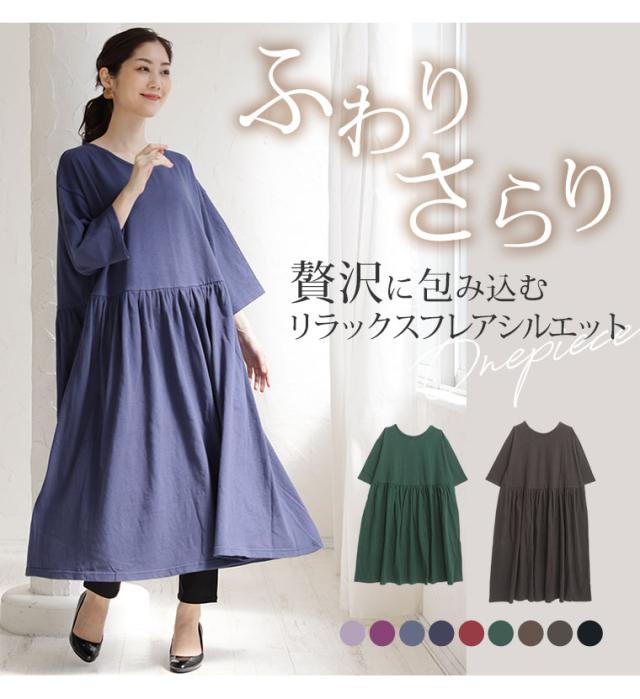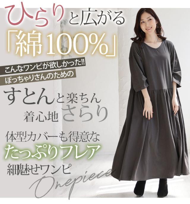 優しい着心地 体型カバーもばっちり!コットン100%ワンピース