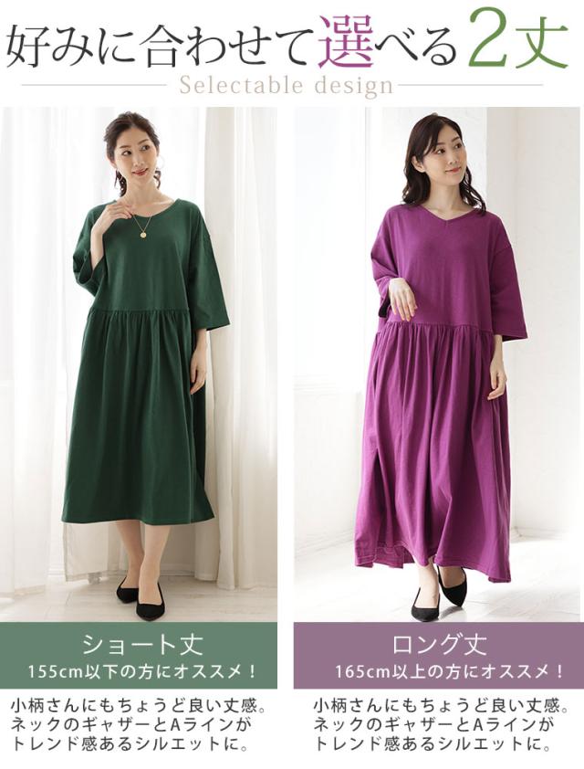 さらりと綿100% 身長別に選べる2丈 大人の七難神隠し コットン切替フレアワンピ体型別コメント