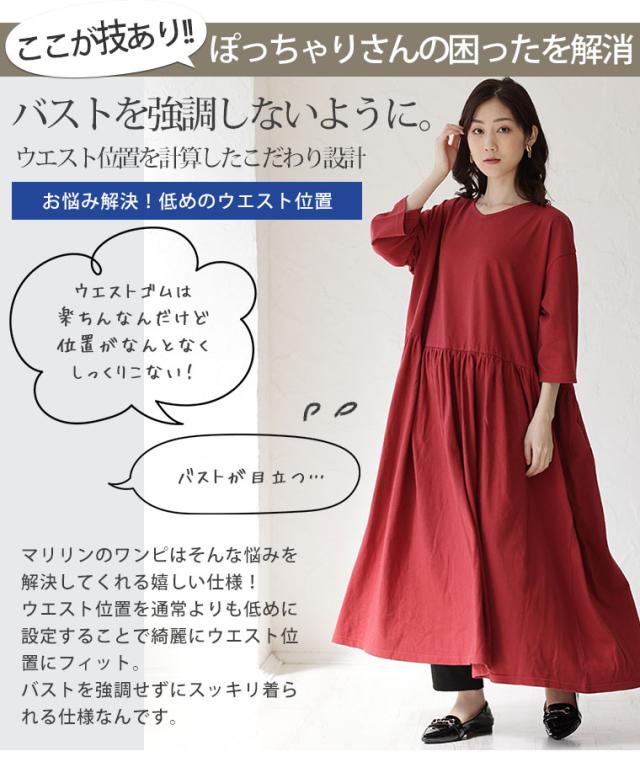 新作 大きいサイズ レディース ワンピース | さらりと綿100% 身長別に選べる2丈 大人の七難神隠し コットン切替フレアワンピ [481111] LL 3L 4L 5L 6L