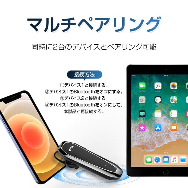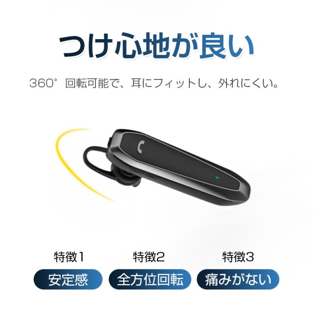 【片耳型/左右耳兼用】片耳イヤホンは耳を完全に塞がず、周囲の音も聞き逃さないので安心して使用できます。付属のイヤーピースは360°回転可能で、両耳に合わせて調整できます。また、柔らかいシリコン製なので長時間装着しても快適です。