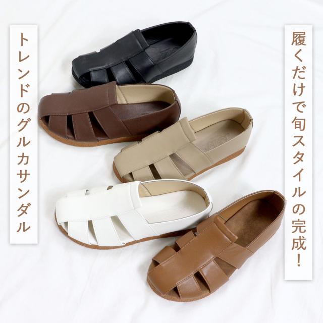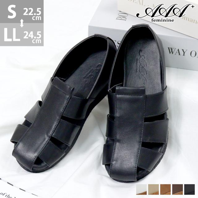 グルカサンダル レディース フラット 2cmヒール No.3564 22.5cm〜24.0cm 黒 ブラック AAA+ Feminine サンエープラスフェミニン