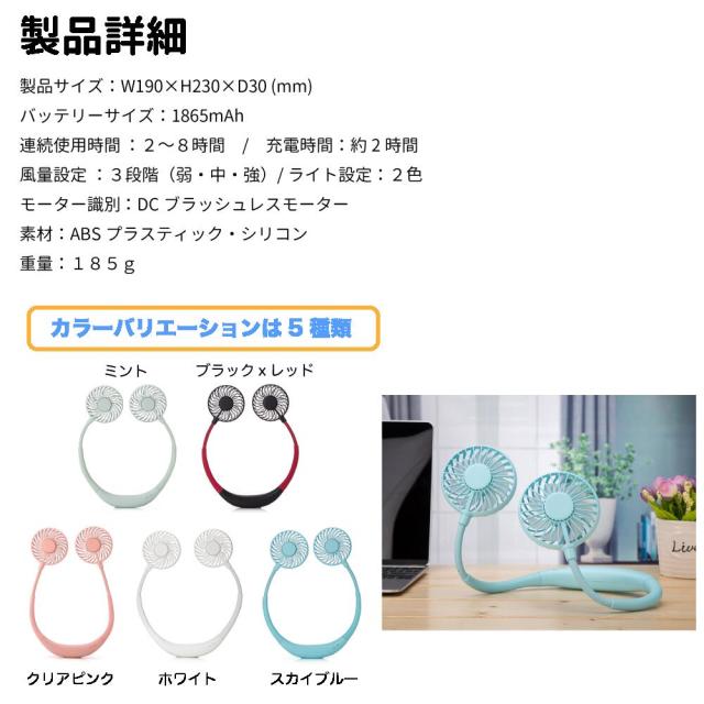 クールアロマファン 置き型 デスク 扇風機 首かけ モバイル 首掛け 首かけ 3段階風量調節 USB充電式 ハンディ ハンズフリー ラベンダー シトラス オレンジ ミント カラフル Cool 7枚羽 ライト LED ポータブル扇風機 レジャー