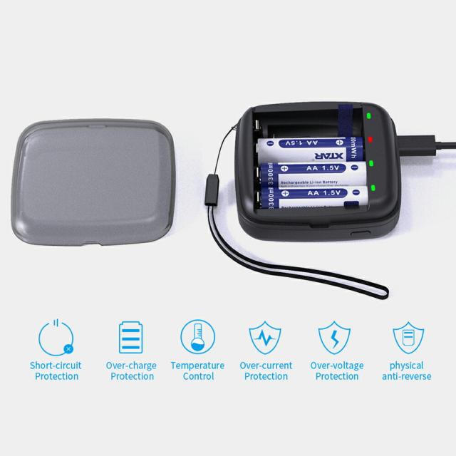 XTAR エクスター BC4 リチウムイオン 充電器 4スロット USB 充電池 単3 単4 対応 小型 バッテリーチャージャー モバイルバッテリー コンパクト 電池 Li-ion ニッケル水素 Ni-MH 過充電 過電流 過電圧 短絡保護 送料無料
