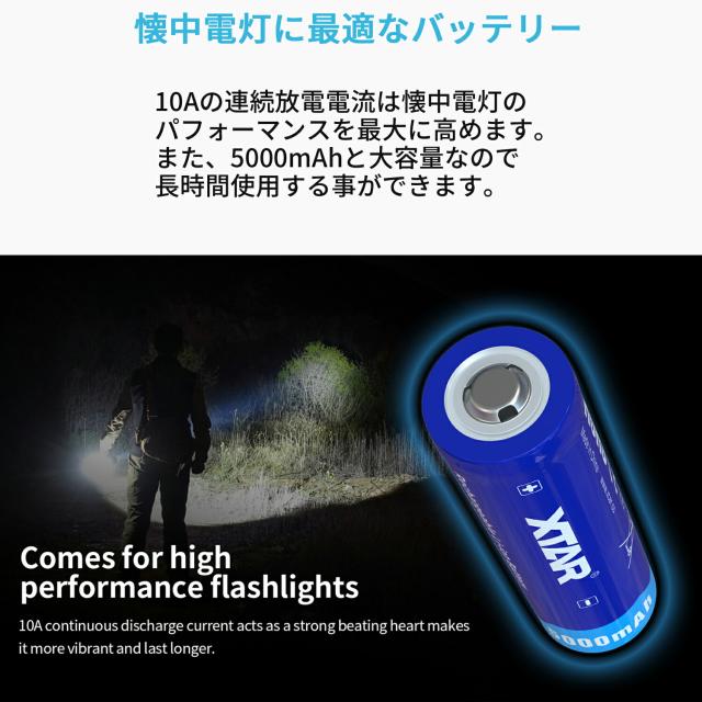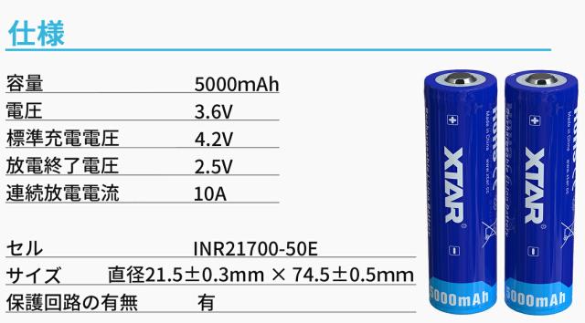 XTAR 21700 5000mAh 3.6V 充電式 リチウムイオン電池 バッテリー 保護回路付き リチウムイオンバッテリー リチウム電池 充電池 フラッシュライト 懐中電灯 用 リチウムイオン 電池 バッテリー 保護回路 搭載 エクスター