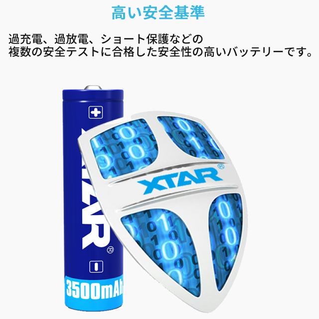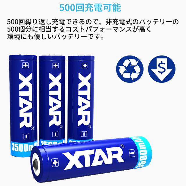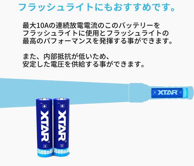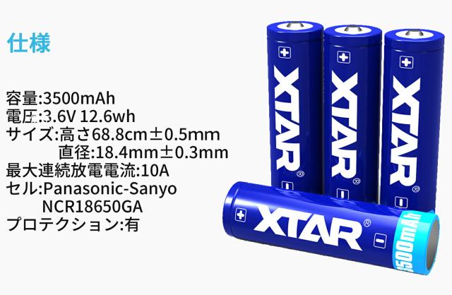 XTAR 18650 3500mAh 3.6V 12.6wh 充電式 リチウムイオン電池 バッテリー 保護回路付き リチウムイオンバッテリー リチウム電池 充電池 充電 フラッシュライト 懐中電灯 用 リチウムイオン 電池 バッテリー 保護回路 搭載 ベイプ 電子タバコ パナソニック セル エクスター