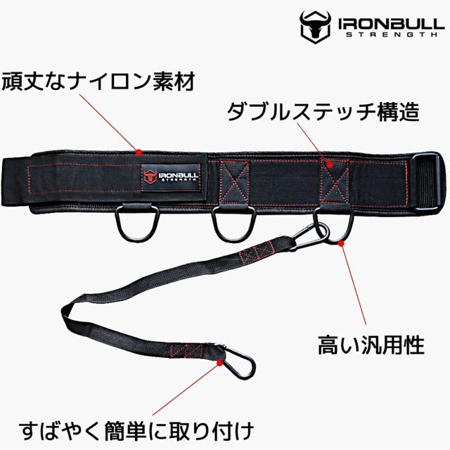 Iron Bull Strength 多機能 ディップベルト ディップ スクワット プルアップ スレッドトレーニング バックサポート トレーニングベルト パワーベルト 筋トレ ベルト 腰ベルト リフティングベルト 腰痛ベルト アイアンブル 腰 筋力 男女共用 レディース 筋力トレーニング