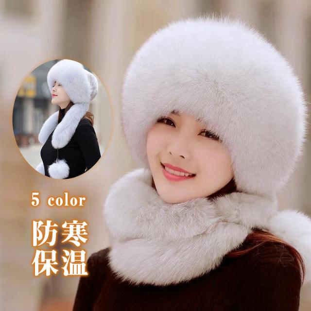 フェイクファー 帽子 ふわふわ もこもこ 帽子スカーフ レディース 秋冬 ファー ハット ロシア帽 防寒保温 バイカラー 可愛い
