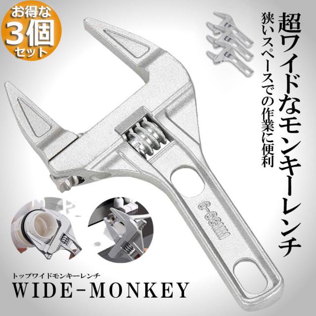 モンキーレンチ たて型 3個セット トップワイド 大の調整範囲 6-68mm 高品質 アルミニウム合金 薄型 ハンドル大開口 DIY 工具 送料無料