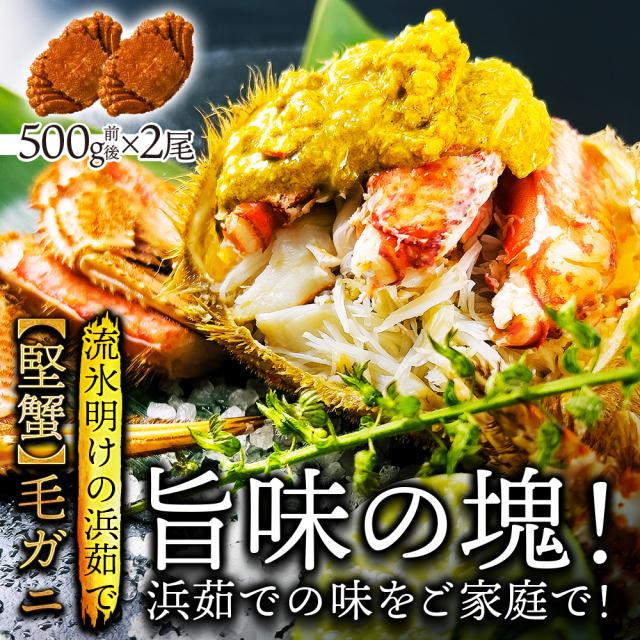 北海道産 オホーツク海 毛蟹 うれしい身がぎっしり堅蟹約500g×2尾【送料無料】[最高級 浜茹で 流氷明け 蟹 かに カニ 毛がに 毛ガニ 堅ガニ 堅がに 蟹みそ 贈り物 プレゼント 内祝い 快気祝い 誕生日 特別な日に