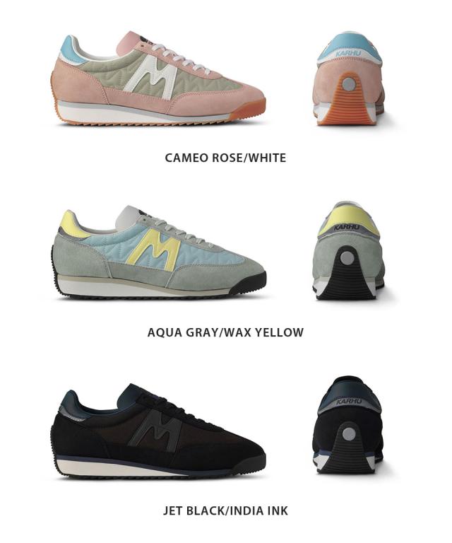 革新的な 特許取得Karhu Air Cushionミッドソール と鮮やかなカラーリングは、当時のランナーたちを魅了しました。
