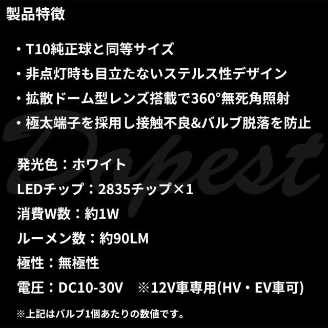T10 バルブ LED ステルス ポジションランプ ナンバー灯 白 汎用 ライト 球 スモール