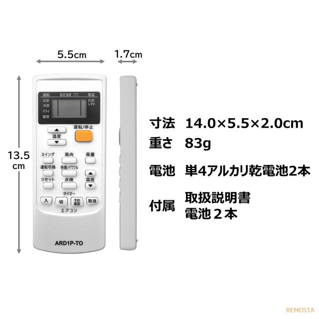 東芝 エアコン リモコン WH-D1P 電池付 代用リモコン RAS-281UD RAS-281UD1 RAS-2820D RAS-2829D RAS-289D1 RAS-3610D RAS-3611D RAS-3611DS RAS-3619D RAS-361JD RAS-361PV RAS-361UD RAS-4010D RAS-4011D RAS-4019D RAS-401JD RAS-401PV RAS-401UD RAS-4020D など REMOSTA