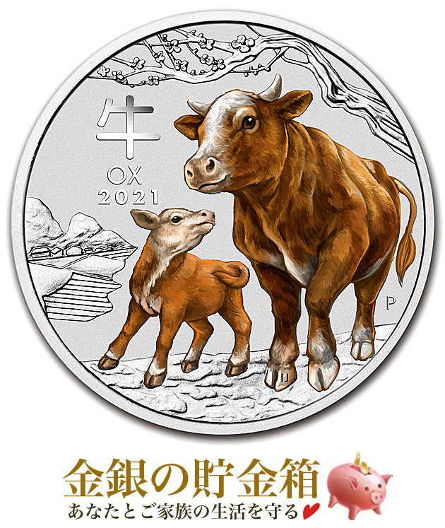 干支丑銀貨 1/2オンス 2021年 カラー クリアケース入り 純銀 オーストラリアパース造幣局発行