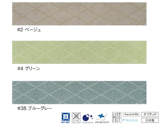 ■機能:防ダニ加工、遊び毛防止、アレルブロック、メディカルストップ(滑り止め)、ホットカーペット・床暖房対応、ウォッシャブル、F☆☆☆☆(ホルムアルデヒドをほぼ放出しない)