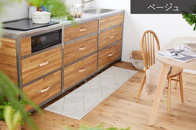 洗える キッチンマット マット 北欧 おしゃれ オシャレ デザイン ラグ ウォッシャブル 約45×180cm Ponto ポント(S) アレルブロック 防ダニ ホットカーペット・床暖房対応 遊び毛防止 滑り止め 日本製 肌に優しい ドット アーガイル 可愛い 引っ越し 新生活
