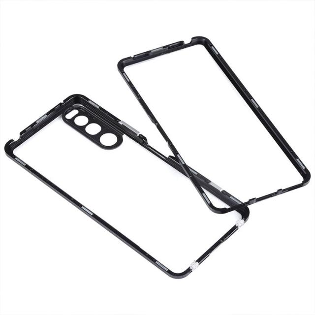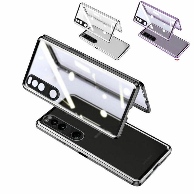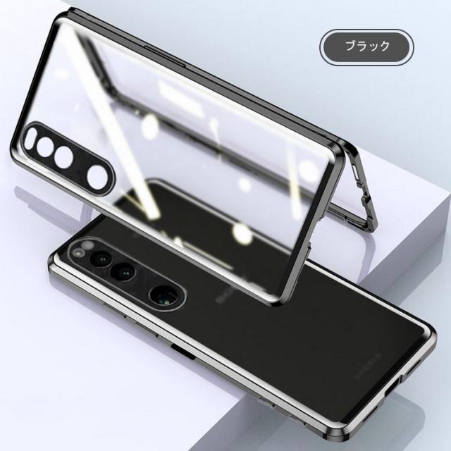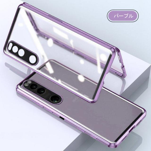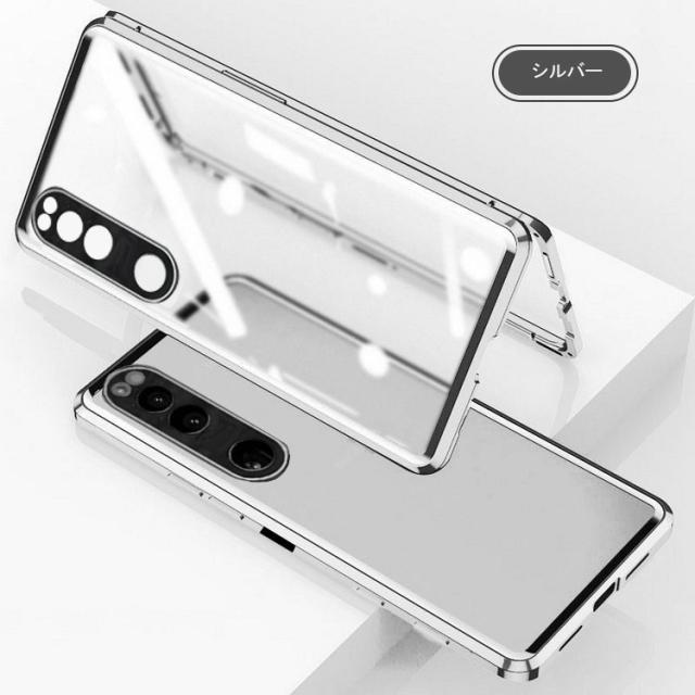 ソニー エクスぺリア5 IV 全面背面保護強化ガラス付き かっこいい メタル サイドバンパー ケース 衝撃吸収