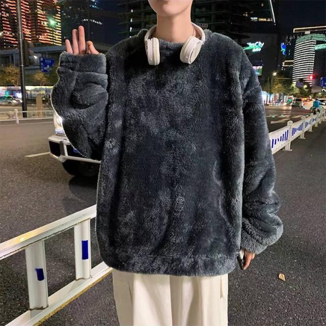 ボア ニット メンズ ファー セーター トップス トレーナー あったか 黒 タイダイ 秋冬