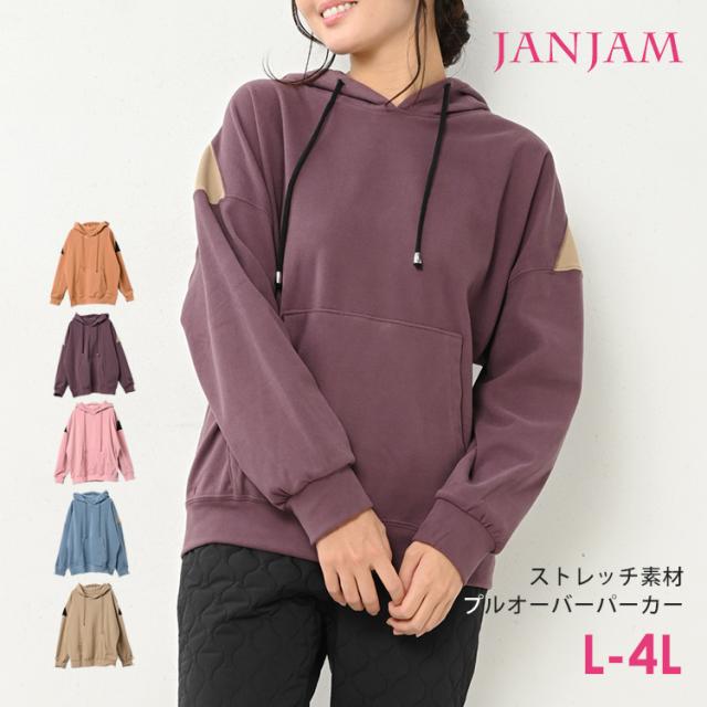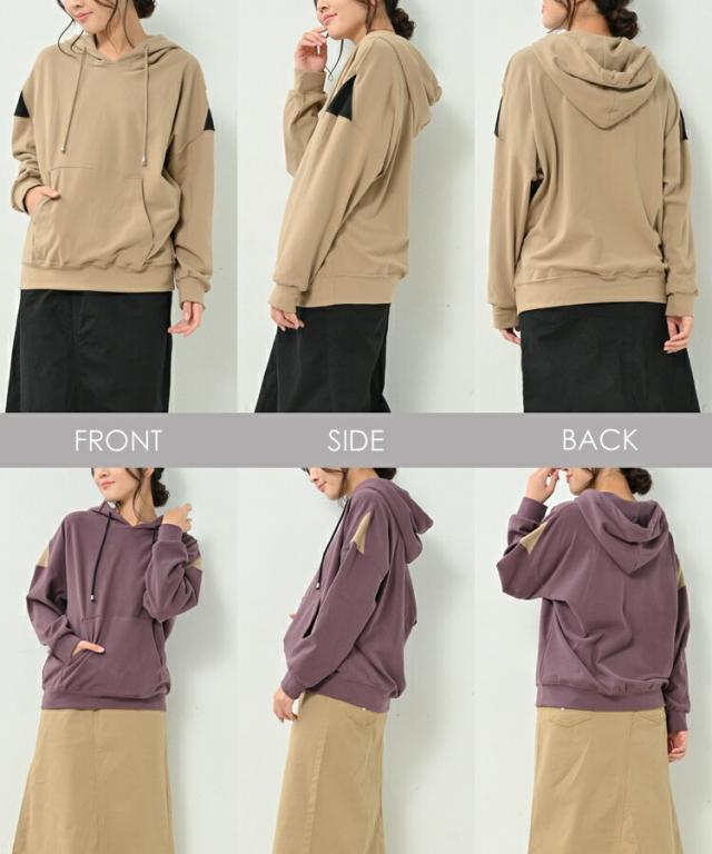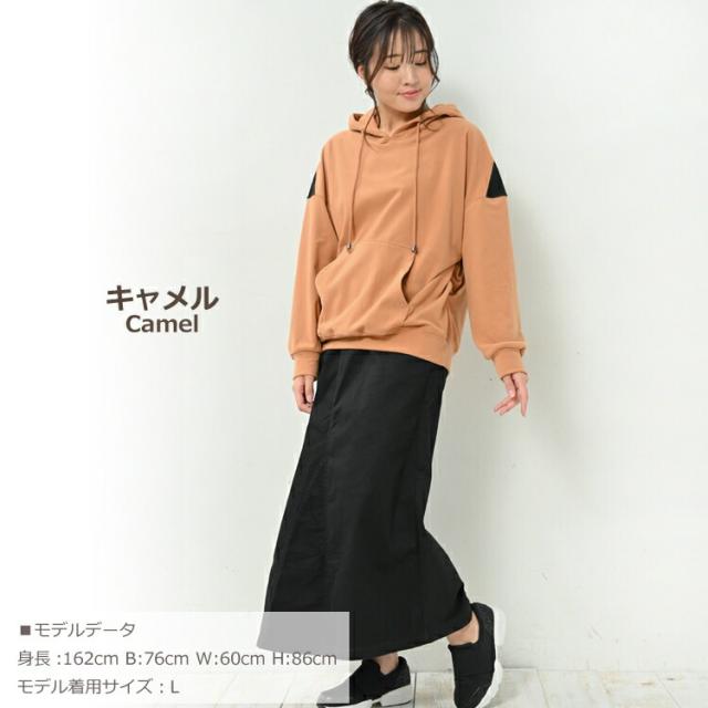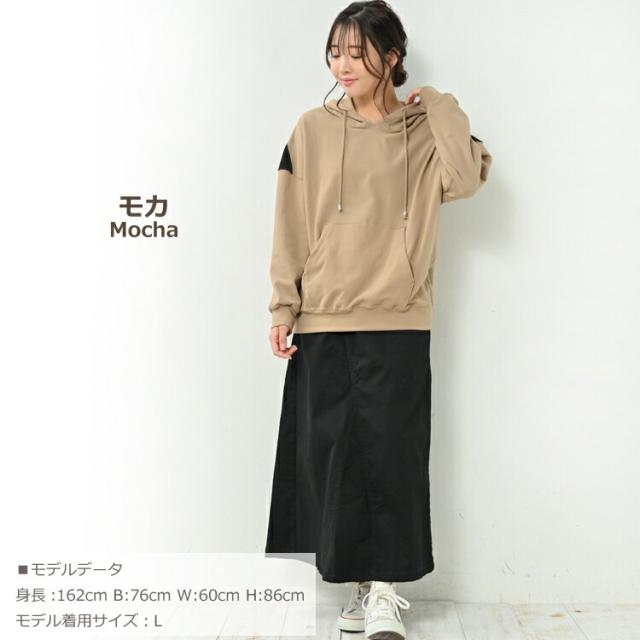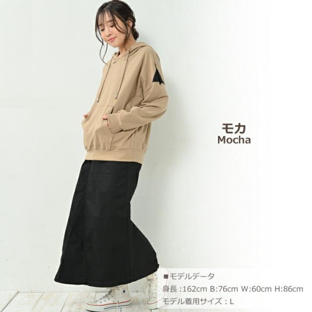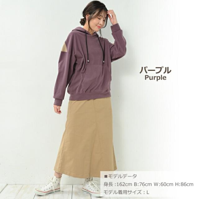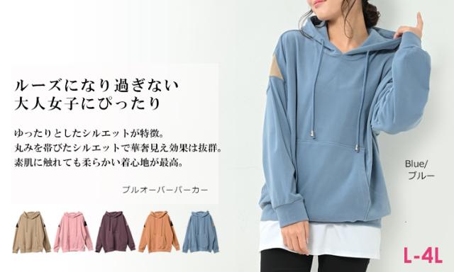 大きいサイズ レディース パーカープルオーバー 長袖 肩切り替え フーディー ポケット トップス L/LL/3L/4L ゆったりサイズ ぽっちゃり女子 プラスサイズ