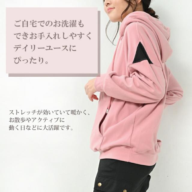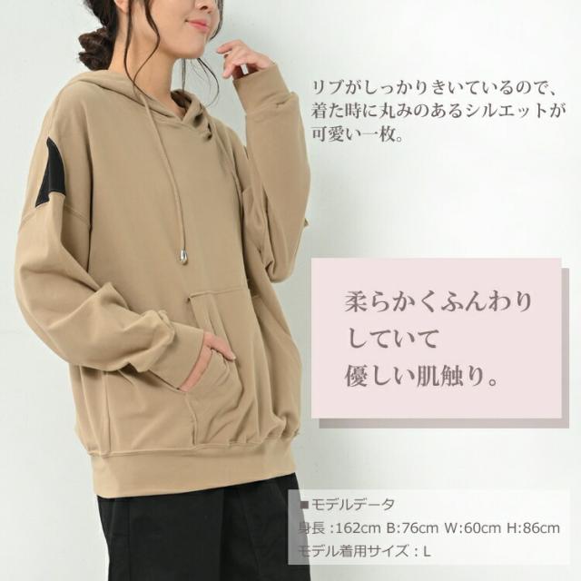やわらか生地とゆったりとした シルエットが特徴のパーカープルオーバー。 丸みを帯びたシルエットで華奢見え効果は抜群。 ストレッチが効いていて暖かく お散歩やアクティブに動く日などに大活躍です。 |