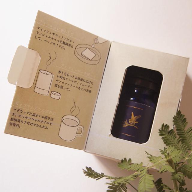 精油が初めての方でも気軽に楽しめるよう、パッケージの扉を開くとおすすめの使い方が載っています。