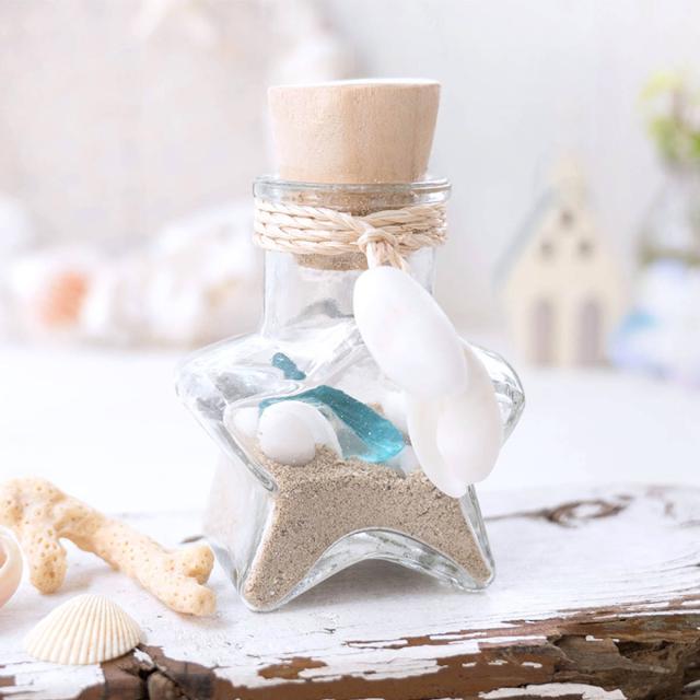 ミニサイズの星形ボトルが可愛いデザインです。飾るだけで気分は夏の海、いつでも海と砂浜を感じられるオブジェです。