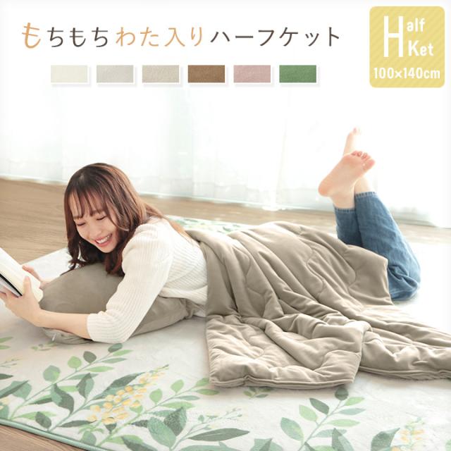 ハーフケット 綿入り もちもち なめらかマイクロベロア 100×140cm 丸洗いOK 22A012