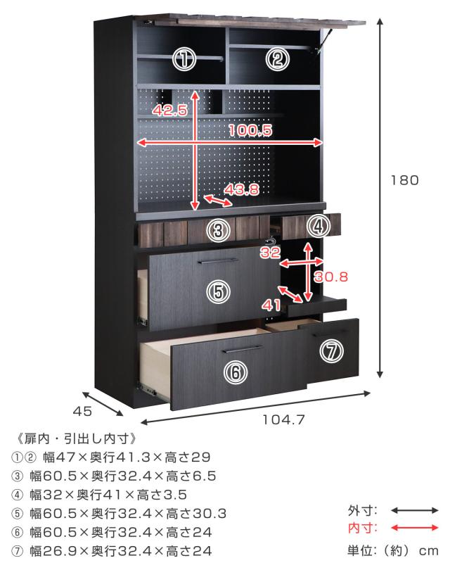 | サイズ | 約 幅104.7×奥行45×高さ180(cm) |