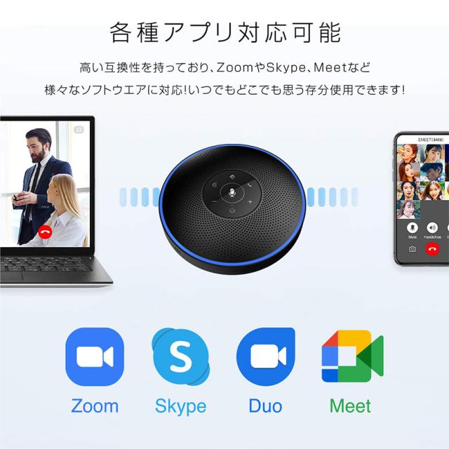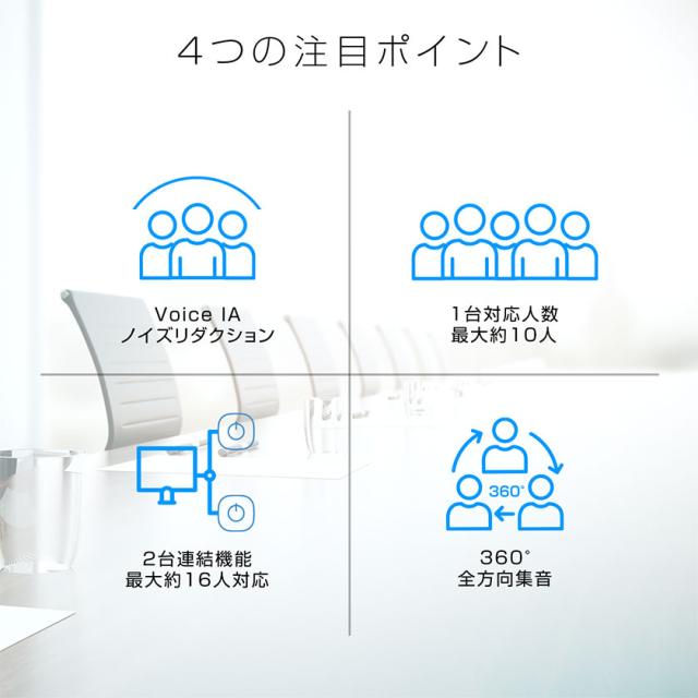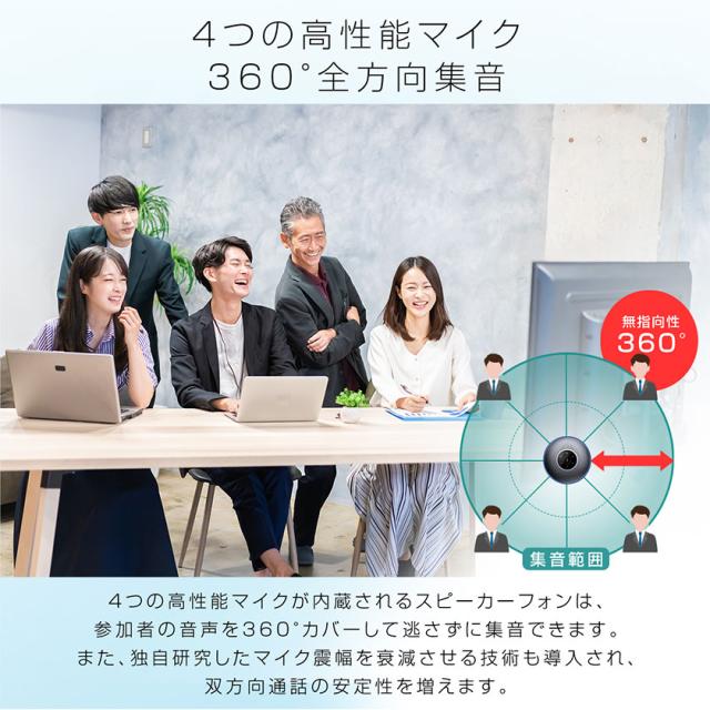 ・【360°全方向集音】4つの高性能マイクが内蔵し、参加者の音声え360°カバーし逃がさずに集音できます。