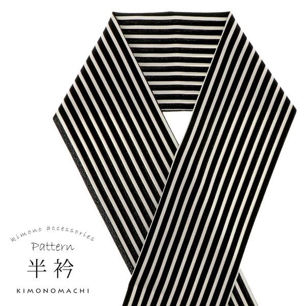 柄半衿 「黒×白 ストライプ」 半衿 半襟 はんえり 和装小物 ポリエステル カジュアル 華やか かわいい オシャレ小物 洒落小物 日本製 【メール便対応可】