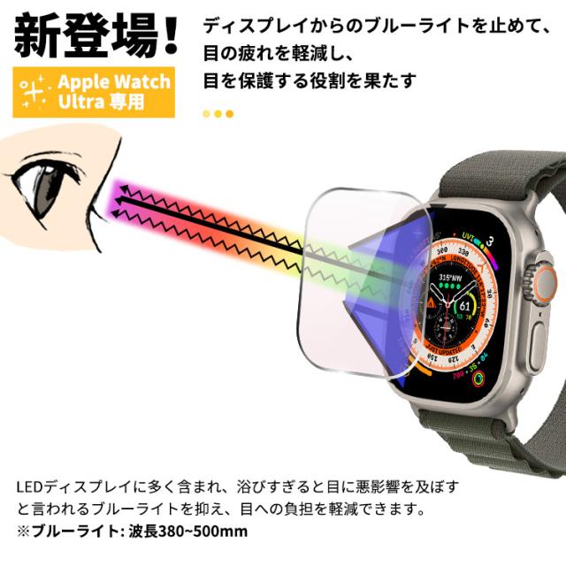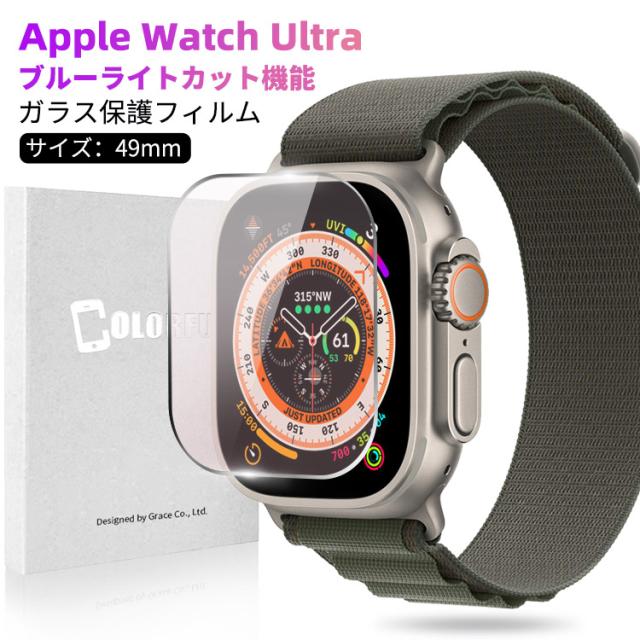 Apple Watch Ultra ガラスフィルム アップルウォッチ ウルトラ Ultra フィルム ブルーライトカット 目に優しい カバー Apple Watch ガラスフィルム 10H硬度 Apple Watch Ultra 全面保護フィルム 指紋防止 ガラス 保護フィルム 日本製旭硝子使用 耐衝撃 指紋防止