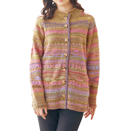 かすりの編柄が華やかな暖か裏ボアジャケット。
