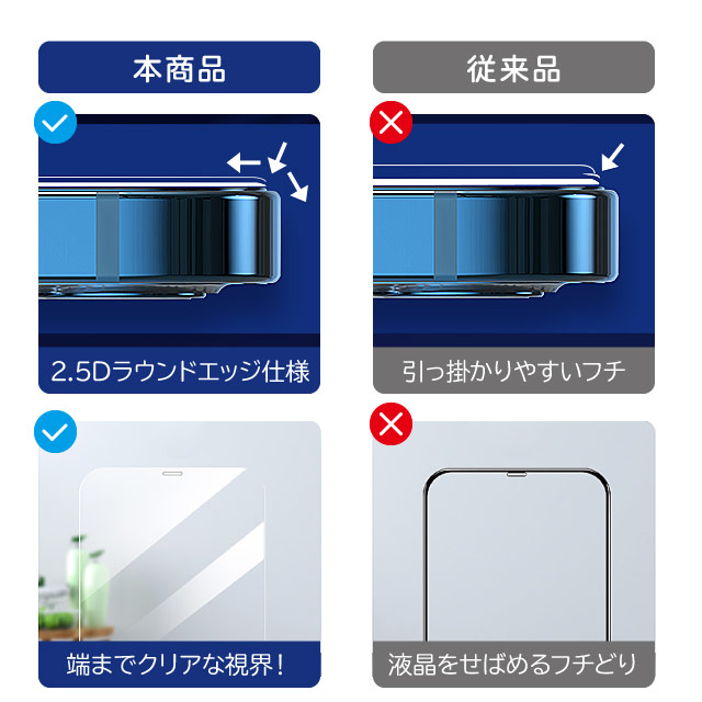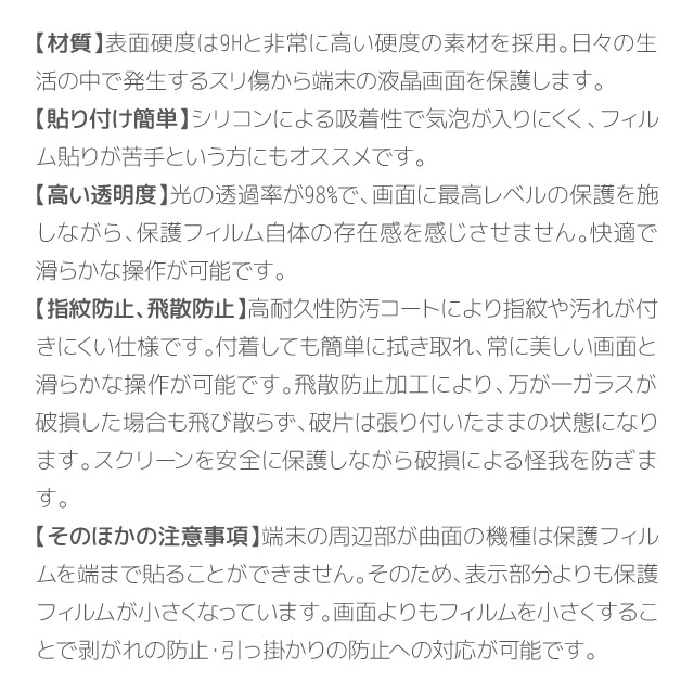 ●曲面が多い機種の場合ガラス横幅が小さくなる場合がございますが、不良ではございません
