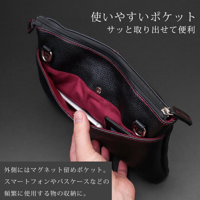 商品カテゴリ:【黒】【ブラック】【赤】【レッド】【青】【ブルー】ショルダーバッグ ミニショルダー クラッチバッグ セカンドバッグ バッグ 日常使い サブバッグ バッグインバッグ サコッシュ メンズ 男性用 ブランド 人気 DIABLO ディアブロ 本革 牛革 使いやすい 便利