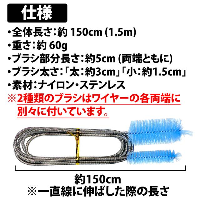 50%offクーポン有 パイプブラシ フレキシブル 1.5m ブラシ2種類 ステンレス ワイヤー ホース クリーナー 水回り 洗浄 パイプクリーナー ワイヤーブラシ パイプ 配管 排水管 アクアリウム ホース 水槽 掃除 お風呂 排水口 奥まで すっきり 詰まり