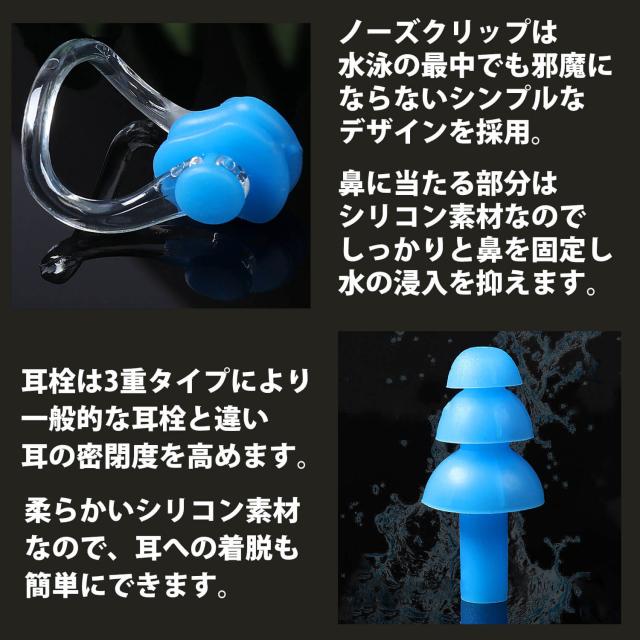 50%offクーポン有 水泳用鼻栓 耳栓付きセット ノーズクリップ 成人フリーサイズ プール 初心者 トレーニング スイムグッズ スイミング 海水浴 競泳 シリコン ノーズクリップ イヤープラグ メンズ レディース 男女兼用 鼻せん 鼻栓 耳せん