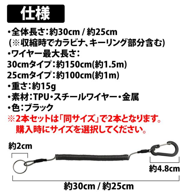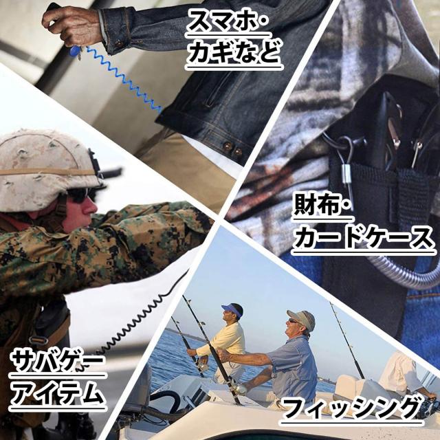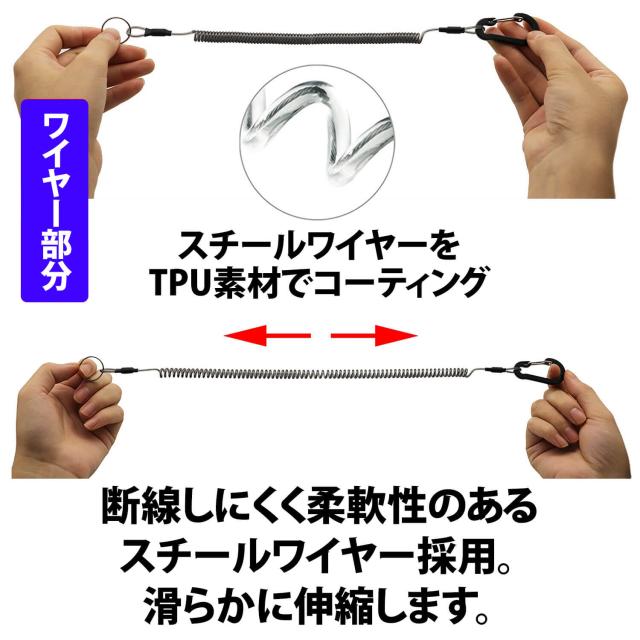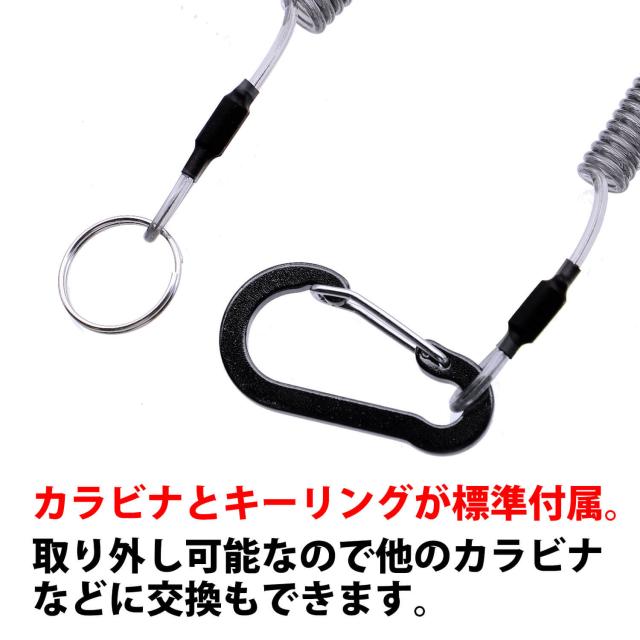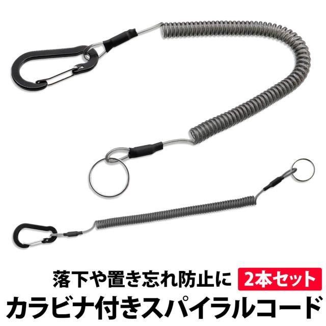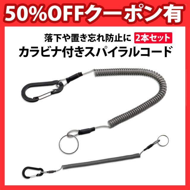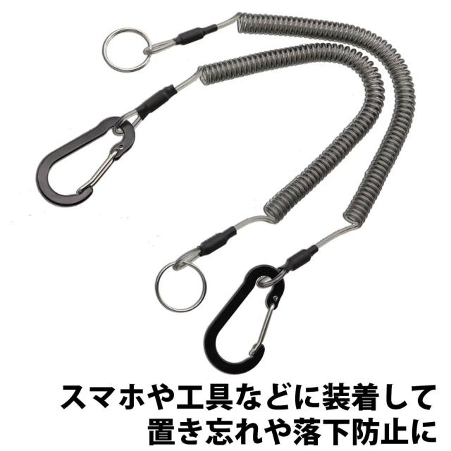 50%offクーポン有 スパイラルコード 2本セット 落下防止 1.5m 1mストラップ 安全ワイヤーコード カラビナ ツール 忘れ物 釣り スマホ ゴルフ 工具 鍵 落とし物 フィッシングプライヤー フィッシュグリップ フォーク コイル ステンレス ワイヤー