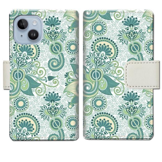 iPhone14 手帳型 ケース カバー アイフォン14 ‐ グリーンペイズリーデザイン - 手帳型 スマホケース 手帳ケース 手帳カバー スマホカバー