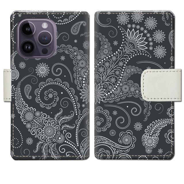 iPhone14Pro 手帳型 ケース カバー アイフォン14プロ ‐ ブラックペイズリーデザイン - 手帳型 スマホケース 手帳ケース 手帳カバー スマホカバー
