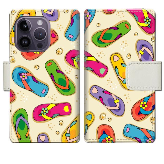 iPhone14Pro 手帳型 ケース カバー アイフォン14プロ ‐ 海辺のサンダルデザイン - 手帳型 スマホケース 手帳ケース 手帳カバー スマホカバー