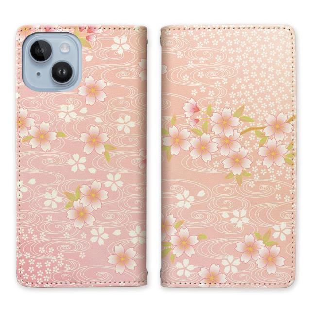Apple iPhone14 ベルトなし スタンド機能 - 流れる桜デザイン - 手帳型 スマホケース 手帳ケース 手帳カバー スマホカバー マグネットでピタッと閉じる