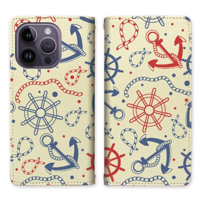Apple iPhone14Pro ベルトなし スタンド機能 - マリン柄Bデザイン - 手帳型 スマホケース 手帳ケース 手帳カバー スマホカバー マグネットでピタッと閉じる