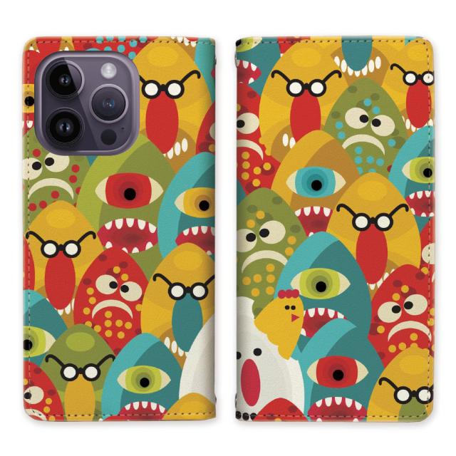 Apple iPhone14Pro ベルトなし スタンド機能 - Eggモンスターデザイン - 手帳型 スマホケース 手帳ケース 手帳カバー スマホカバー マグネットでピタッと閉じる