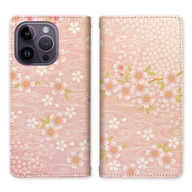 Apple iPhone14Pro ベルトなし スタンド機能 - 流れる桜デザイン - 手帳型 スマホケース 手帳ケース 手帳カバー スマホカバー マグネットでピタッと閉じる