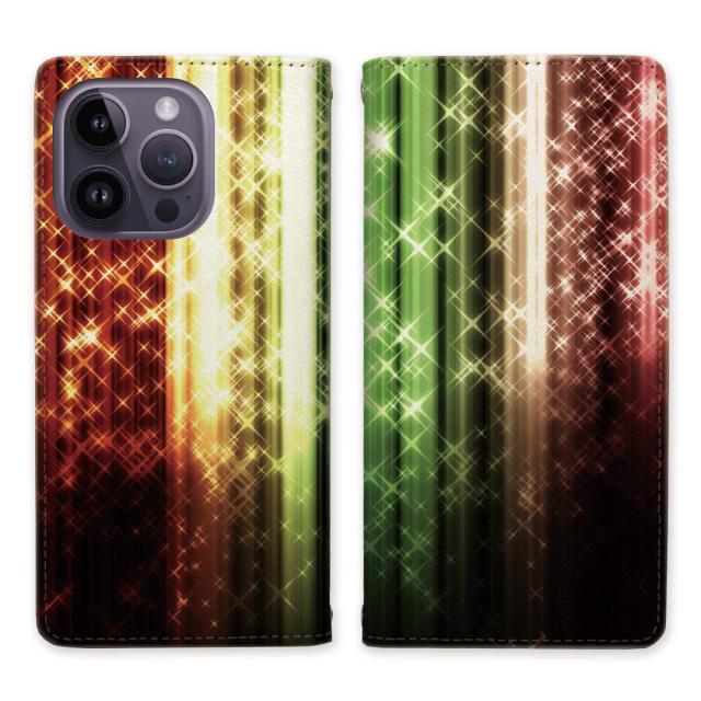 Apple iPhone14Pro ベルトなし スタンド機能 - オーロラストライプデザイン - 手帳型 スマホケース 手帳ケース 手帳カバー スマホカバー マグネットでピタッと閉じる
