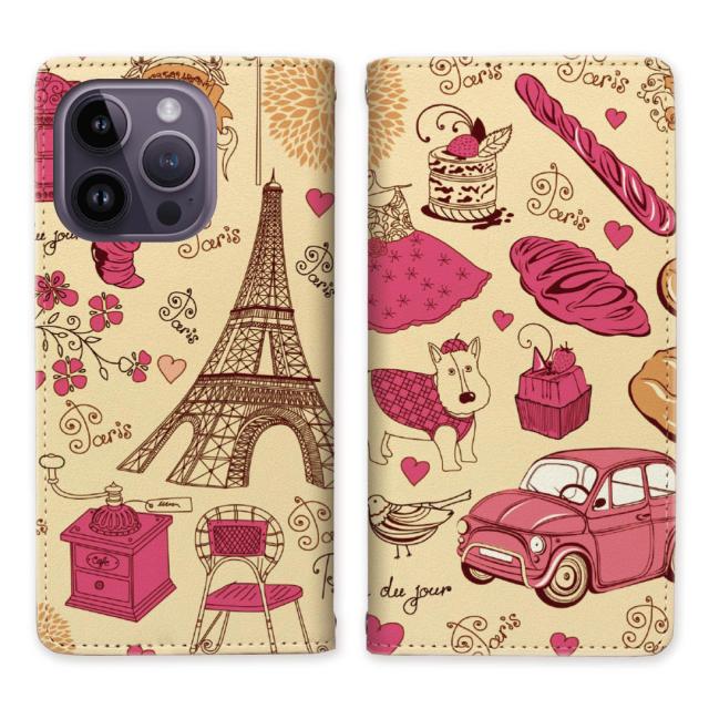 Apple iPhone14Pro ベルトなし スタンド機能 - Parisデザイン - 手帳型 スマホケース 手帳ケース 手帳カバー スマホカバー マグネットでピタッと閉じる