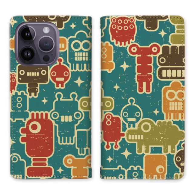 Apple iPhone14Pro ベルトなし スタンド機能 - ウチュウジンデザイン - 手帳型 スマホケース 手帳ケース 手帳カバー スマホカバー マグネットでピタッと閉じる