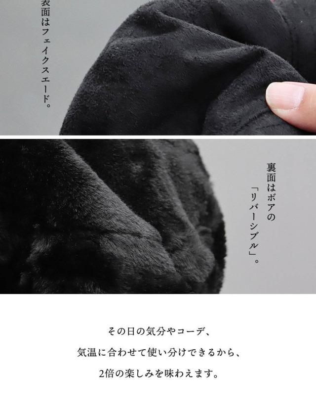 ・表面はフェイクスエード、裏面はボアの「リバーシブル」。その日の気分やコーデ、気温に合わせて使い分けできるから、2倍の楽しみを味わえます。