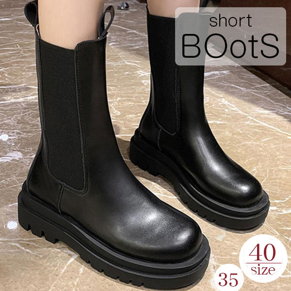 ポイント超超祭利用可 ショートブーツ レディース サイドゴア チェルシーブーツ ワークブーツ 靴 ブーツ 革靴 エンジニア カジュアル 厚底 美脚 シューズ アンクル PU